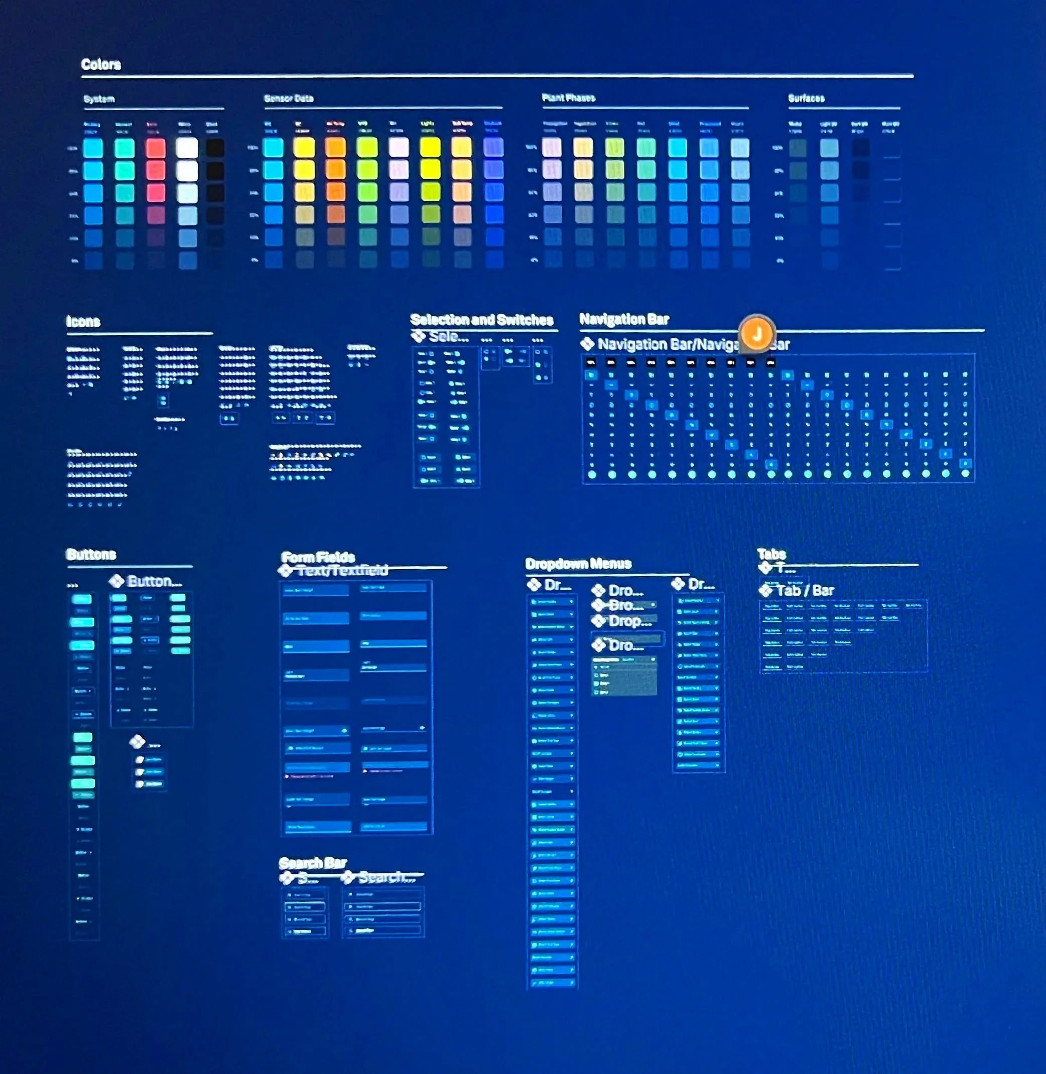 In addition to designing the dashboard, I helped build and maintain AROYA’s design system in Figma. This library included color logic tied to sensor data, standardized typography, iconography, and a full set of reusable interactive components with defined states. Using these system elements ensured visual consistency across the platform and gave developers a predictable, scalable foundation—linking directly to front-end libraries and accelerating implementation. Strengthening the system also improved collaboration, allowing design and engineering to iterate more efficiently across future product updates.