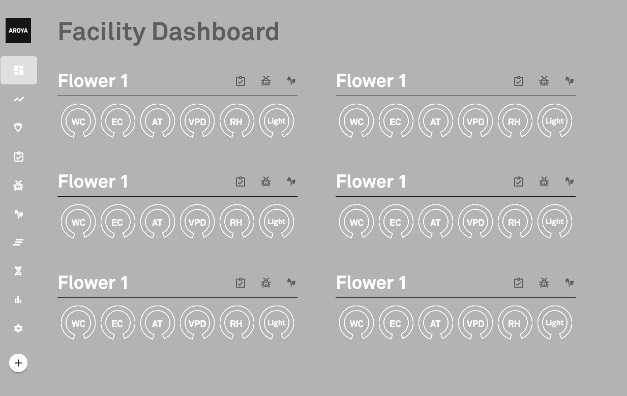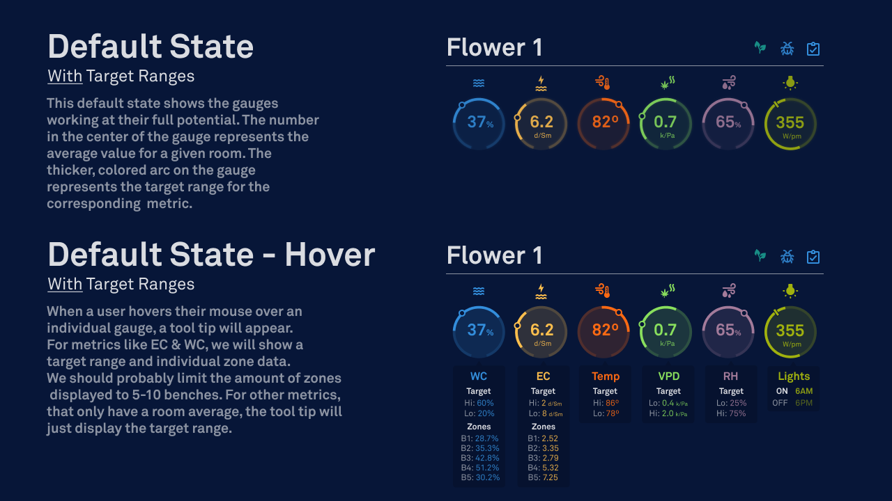Overview: I designed a data-rich dashboard that unifies environmental sensor data, production metrics, and real-time alerts into an intuitive, high-efficiency interface used by some of the world’s largest commercial grow operations.
